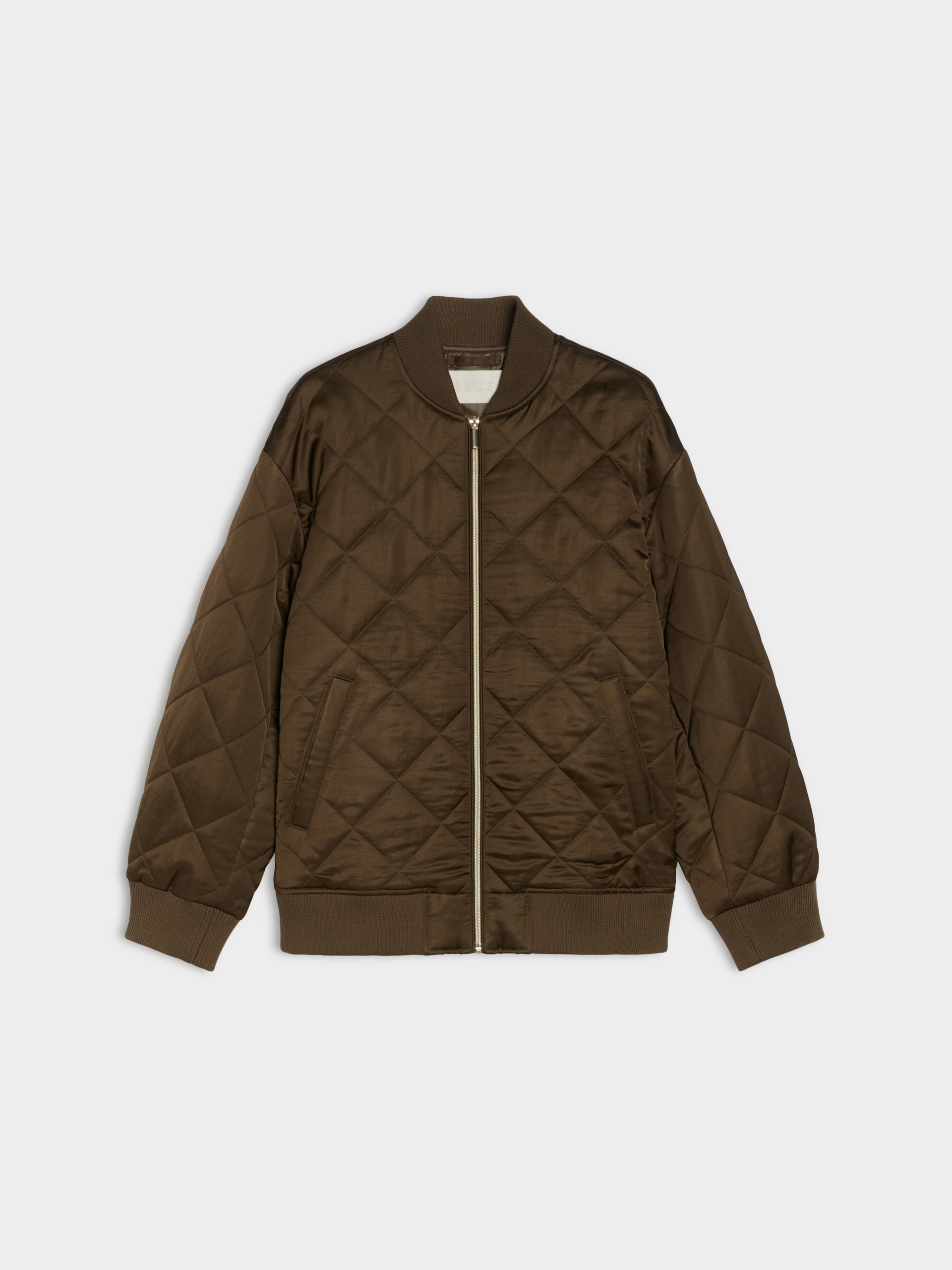 • Bomber jacket in padded and quilted linen-blend satin fabric
